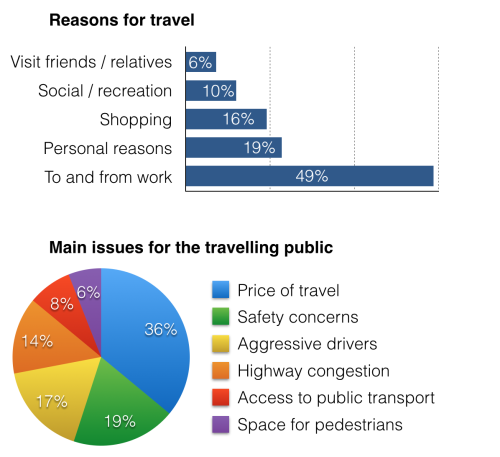 The charts below show reasons for travel and the main issues for the travelling public in the US in 2009.