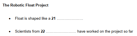 - In the question where you are required to complete a gap, you should only write the necessary missing word(s) on the answer sheet.